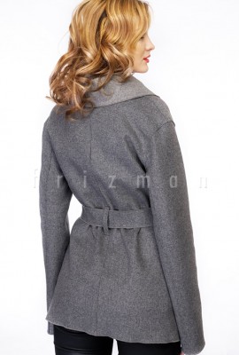 10) 670 S Куртка из шерстяного сукна с эффектом валяной шерсти. Отделочные строчки по воротнику, бортам и декоративному накладному карману, (пояс с металлической пряжкой). Силуэт полуприлегающий с заниженной линией талии, застежка двубортная на две потайные кнопки и декоративную пряжку из металла, длина 60-64см. Состав верха 80% VirginWool, 20%Polyamide, подкладка 100% Polyester