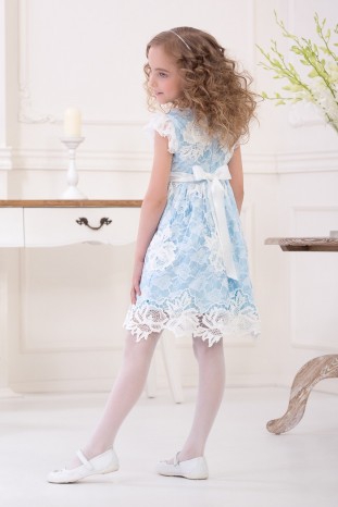 1. Пристрой платья для девочки нежно голубого цвета с белым кружевом, очень красивое!!! (новое, с бирками)