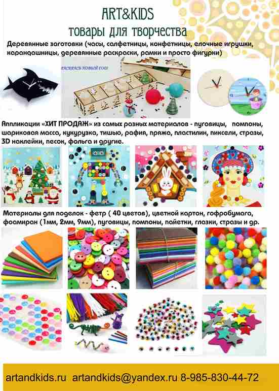 За более подробной информацией обращайтесь на почту artandkids@yandex.ru (или любой другой эл.адрес наших магазинов), а также по телефону 8-985-830-44-72
