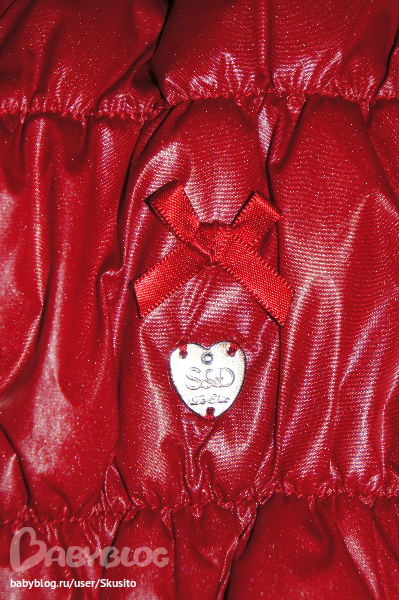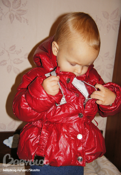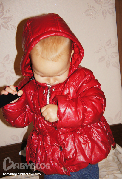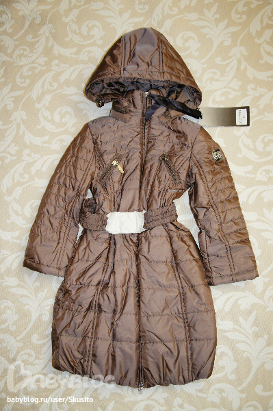 Капюшон отстёгивается, 2 карманчика - 1 для мобилы и 1 для мелочей, типа ключей , стразы на пряжке). Наполнитель - холофайбер (европейская зима - до 15 градусов)