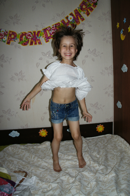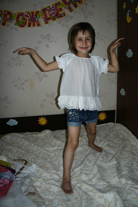 Коричневые брючки хлопковые -для лето просто суперские))) на нас 6 размер -НЕРЕЛЬНО БОЛЬШИЕ((, 5-ка примерно до роста 110см, поэтому велики и длинны на см5, но другие доставать времени не было. Они же ниже))