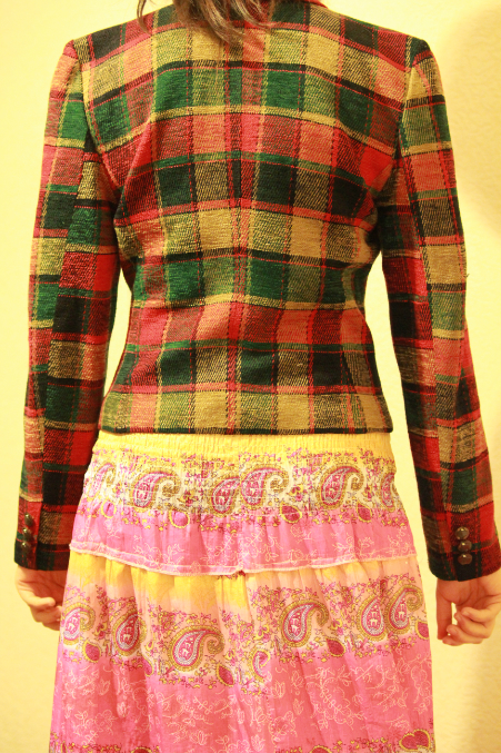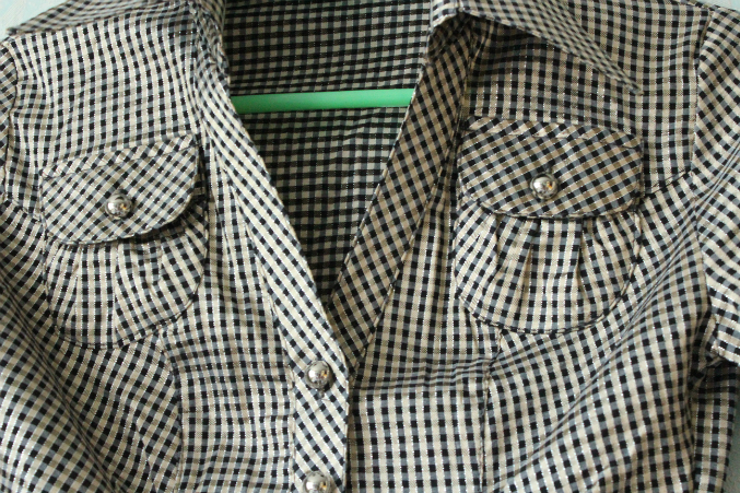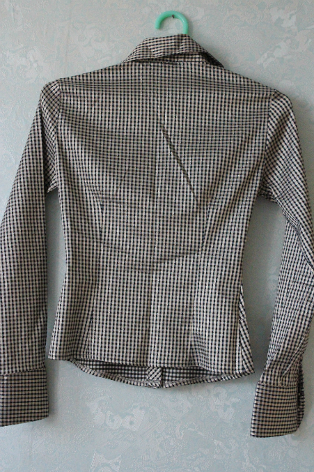 Размер 44 приталенная, цвет черно-золотистый, на солнце переливается.