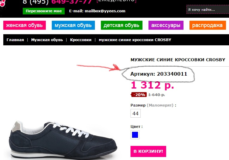 6. Заказ оставляем в теме. Пишем: артикул, размер.