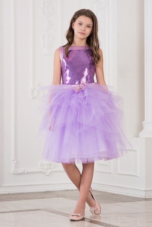 7.МОДЕЛЬ 304 короткое сирень Ткань верха: матовый атлас плотный, однородные пайетки, низ- сетка 100% П/Э. Подкладка 100% Х/Б р 116,122,128,134,140,146,152 2700+орг