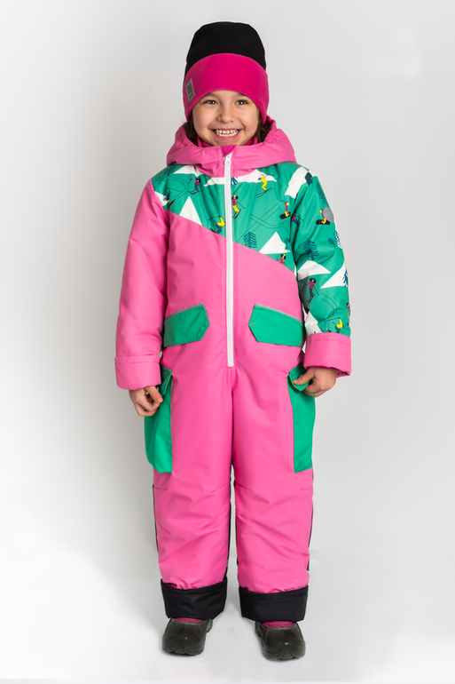 зеленый принт "горнолыжники"/яр.розовый // яр. розовый