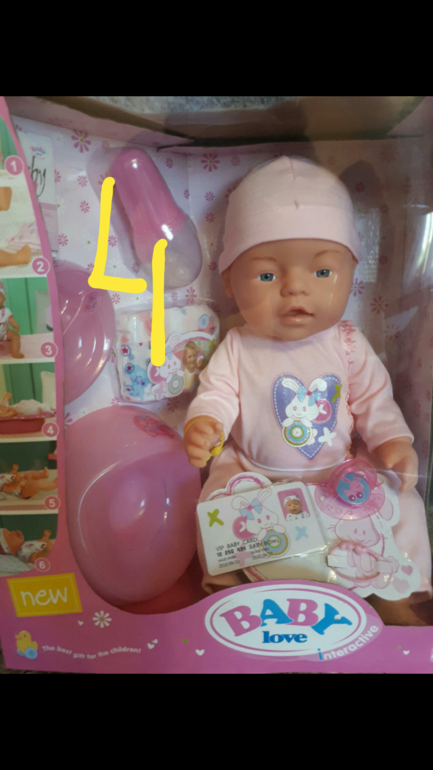 Маленькая "мамочка" может её накормить, посадить или положить в кукольную коляску вывезти на прогулку, искупать, переодеть, поиграть с ней, посадить на горшочек, уложить спать в кроватку . Подарите радость малышке.