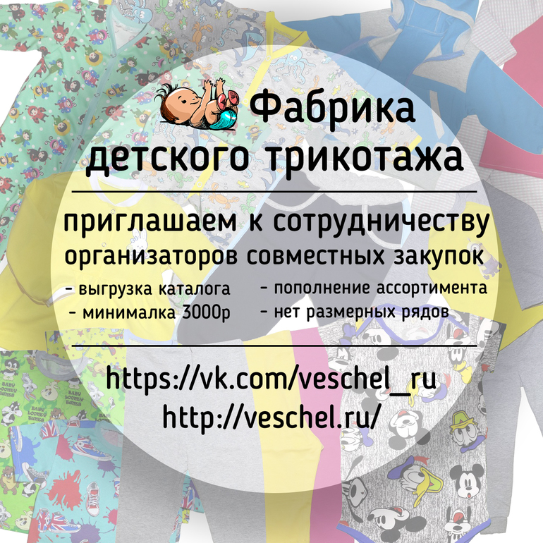 Производство и оптовая продажа детской одежды. Детские боди, комбинезоны, кофты, футболки, платья, костюмы и многое другое!