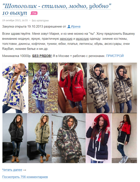 7. Если Вам что-то не подошло по размеру, цвету, фасону и т.п. - пристраиваете сами. Я могу только в посте закупки указать ссылку на Ваш пристрой.