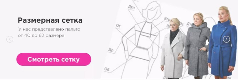 Мы предоставляем широкий ассортимент молодежных и женских пальто, плащей, ветровок и толстовок абсолютно на любой «вкус и цвет». Диапазон размеров также довольно разнообразен - от 42 до 62 - что позволяет нам удовлетворить запросы практически всех покупательниц. Также предлагается большой выбор материала: терракот, твид, плащевка и жаккард. Не выходя из дома, Вы сможете найти пальто своей мечты на нашем сайте.