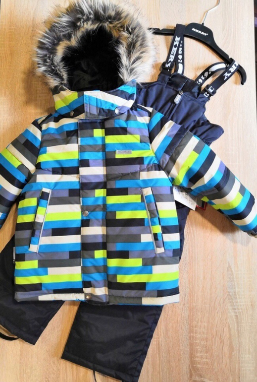 Теплый комплект: куртка с принтом и полукомбинезон.