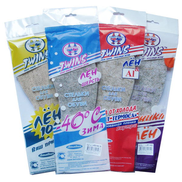 Практически все стельки содержат льняное волокно благодаря которому стельки Twins поглощают избыточную влагу, что спасает ноги от переохлаждения и от перегрева в условиях повышенной влажности. Нетканый лён имеет особую структуру, даже под давлением веса человека между волокнами льна всегда остаются воздушные промежутки, через которые осуществляется вентиляция стопы и кожа стопы может «дышать».