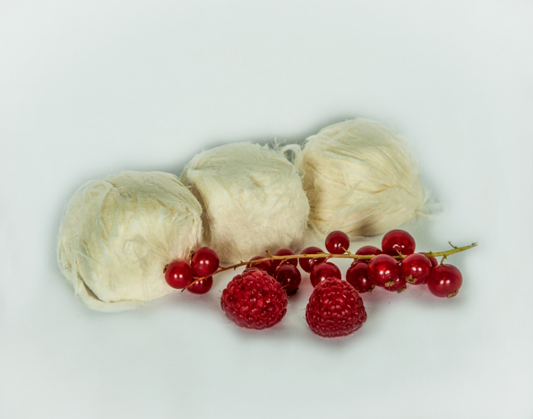 Тысячи тончайших ниточек из заварного теста и карамели по-настоящему тают во рту, как мороженое, оставляя легкий привкус орешков, халвы и карамели.