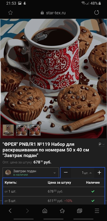 Ещё, я решила развлечь себя холодными февральскими вечерами и выбрала 2 картины по номерам на кухню. Там принцип тот же - больше одинаковых картин - меньше стоимость.