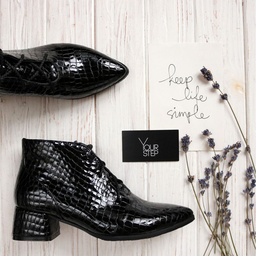 Ботильоны из лаковой кожи черного цвета под рептилию Арт. 457-7/53Ок