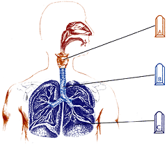 Небулайзер - устройство, предназначенное для жидких лекарственных веществ, которые под действием сжатого воздуха от компрессора преобразуется в мелкодисперсный аэрозоль. Чем меньше частицы аэрозоля, тем глубже они проникают в дыхательные пути. Лечение верхнего дыхательного тракта - пистон. А, где аэродинамический размер частиц составляет 5 - 10 мкм. Лечение трахеально - бронхиального тракта - пистон Б, где аэродинамический размер частиц составляет 3 - 5 мкм. Лечение глубокого расположения отделов дыхательного тракта - пистон. С, где аэродинамический размер частиц составляет 0,5 - 3 мкм.