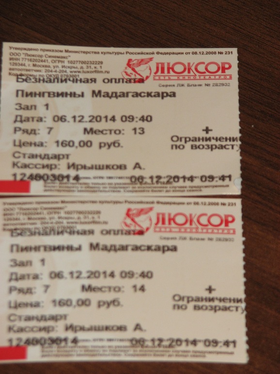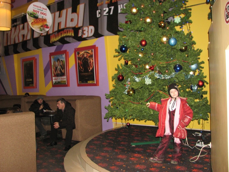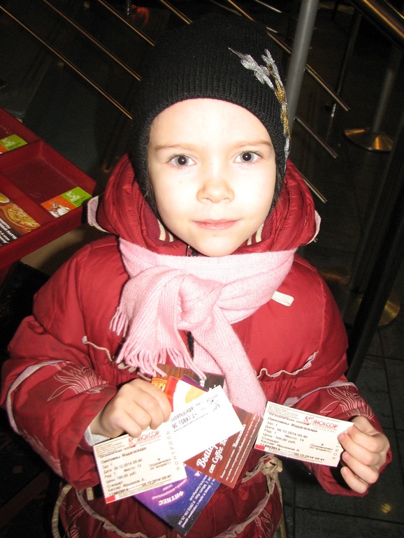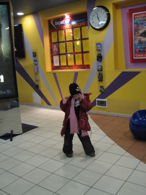 Дальше небольшой наш фотоотчетик. На первой фотке Саша держит два билетика и кучу рекламок кинотеатра. Видать, положено начало! :)))))))