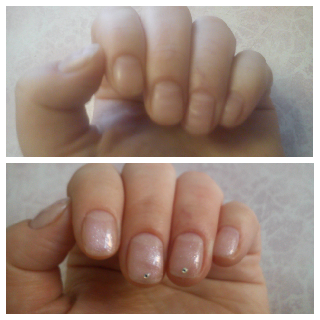 ,ногти постоянно ломаются и вид у них не айс,лаком красить не могу ,т.к. все горбы сразу очень видны жопа одним словом Я сходила на маникюр,мне сделали укрепление ногтевой пластины биогелем и Шеллак покрытие,можно было выбрать лак поярче,но я побоялась..Ноготочки у меня стали ровные и аккуратные.Фото до..не передает всего ужаса проблемы,но поверьте это был ужас..Так вотт..после маникюра я побежала купила себе УФ лампу,наборчик гель-лаков и всякие штучки.Так я этим увлеклась прям словами не передать,вчера уже потренировалась на маме,думаю у меня все получится,а чем еще заняться в декретном отпуске?!Подружки встали в очередь