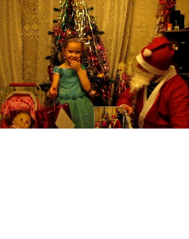 Благодарности и поздравленияВыиграли мы у ББшечки приз. Сашулька рисовала для конкурса, и нам Люба со своими коллегами, как и всем остальным деткам, участвующем в розыгрыше, презентовали сладенький подарок и красивую блузочку. Но т.к. самих фоток нет, но есть только видео с вручением подарков дедом Морозом (мой брат), оттуда я и вырезала фотографии.