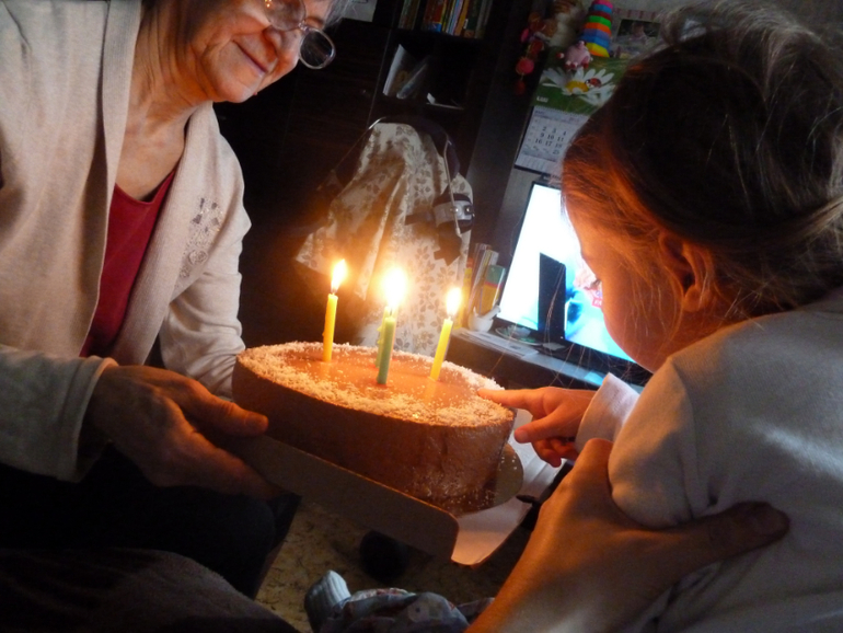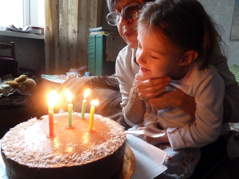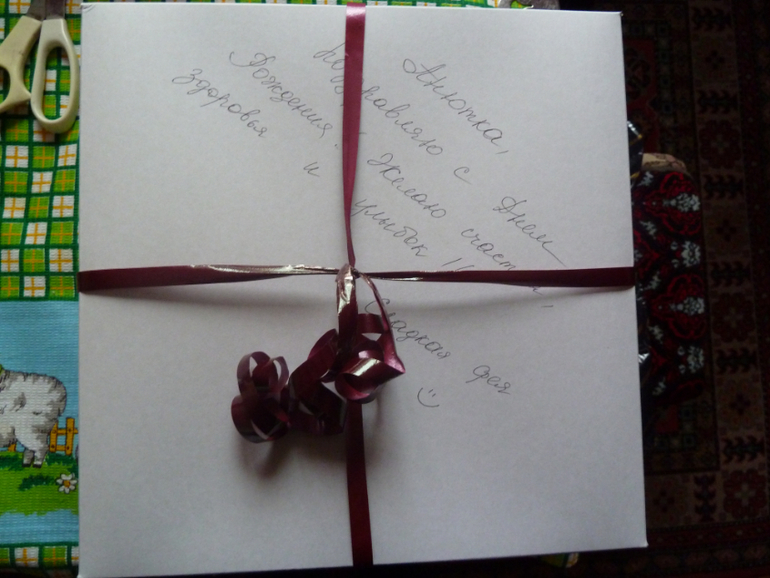 Благодарности и поздравленияСегодня у моей дочечки День Варенья, 5 лет, и Катюша, Сладкая Фея, вчера преподнесла ей вкусненький подарочек, который жил в нашем холодильнике целые сутки и ждал выхода в свет в назначенное время)) Мы не стали долго тянуть, а начали его пробовать еще в пижамах непричесанные рано утром)) Началось всё с искреннего и доброго пожелания на коробке, потом я зажгла 5 свечек, Анюта их посчитала, потрогала пальчиками огонек, сказала "гаячо" и залезла руками в сам торт, вся измазюкалась))) восторженно дула на свечки и просила зажечь их еще раз, собственное что я и делала раз 8)) И под конец, как настоящие артистократы, мы отведали бананово-шоколадноое наслаждение, нереально вкусный торт, по вкусу несравнимо с покупным магазинным, такой нежный и воздушный! Волшебный!