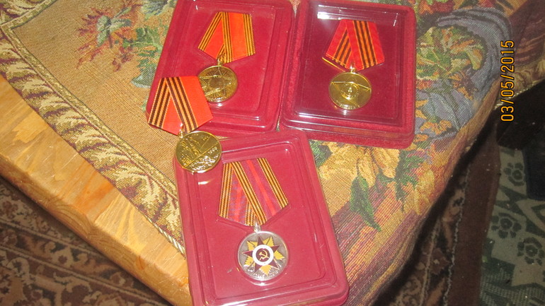 Получили посылочку и отвезли бабушке. Она долго не могла поверить, что ей прислали подарочек к 9 мая! Была тронута до глубины души!!! А когда открыла то сразу накинула на себя шаль)))) Шаль очень теплая и очень очень уютная и приятного кофейного цвета)))) Бабушка все удивлялась сколько же работы вложено в эту шаль))) Остальные подарки бабушка сразу припрятала, так что мало что попало в фотообъектив. Успела увидеть коробочку конфет, полотенчики, кружку-ситечко и коробочку с чаем. Зарема, спасибо Вам большущее от всех нас!!! Так приятно, что на свете есть такие замечательные человечки, приносящие радость другим!!! А вот и моя бабушка в обновке)))) А медалей кстати оказалось 4))))