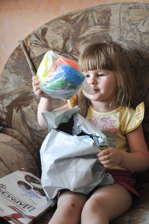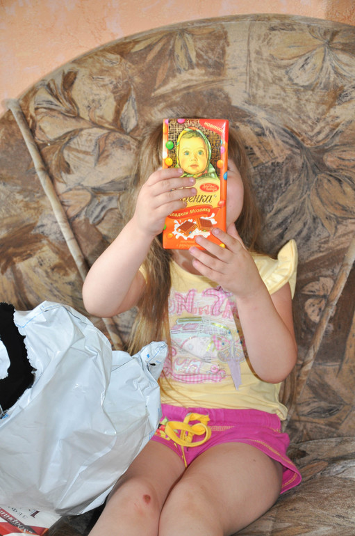 . Кроме куклы в посылке пришли сладости, шоколад, зефир и море резиночек. Инга научила плести Анютку простейшие браслеты, девчонки так счастливы. Спасибо Вам огромное!