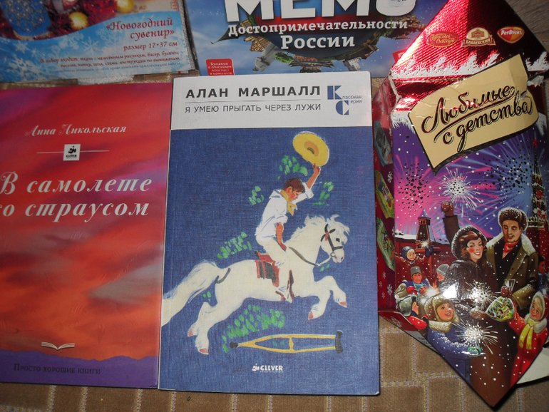 Три книжечки чудесные, игра замечательная, снегурочка-рукоделочка на бутылку чехол и сладенькое на десерт!