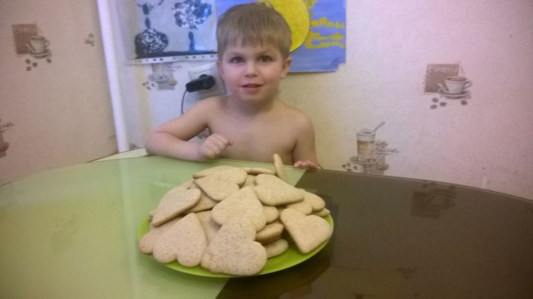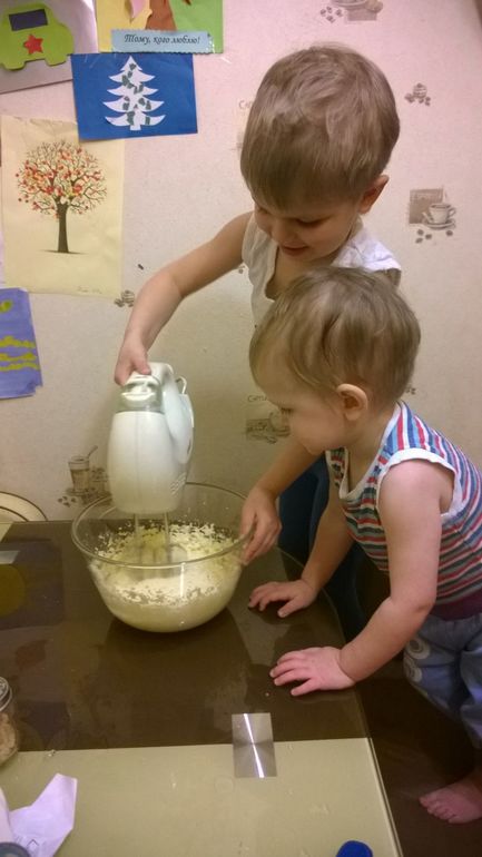 И вот настало время заняться печеньками, это мы отложили на след. день и пока Димка спал, мы с Захаром, кулинарничали