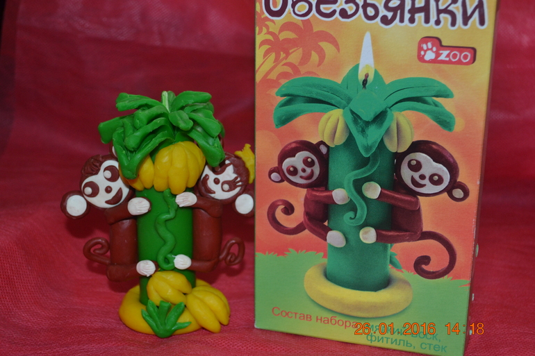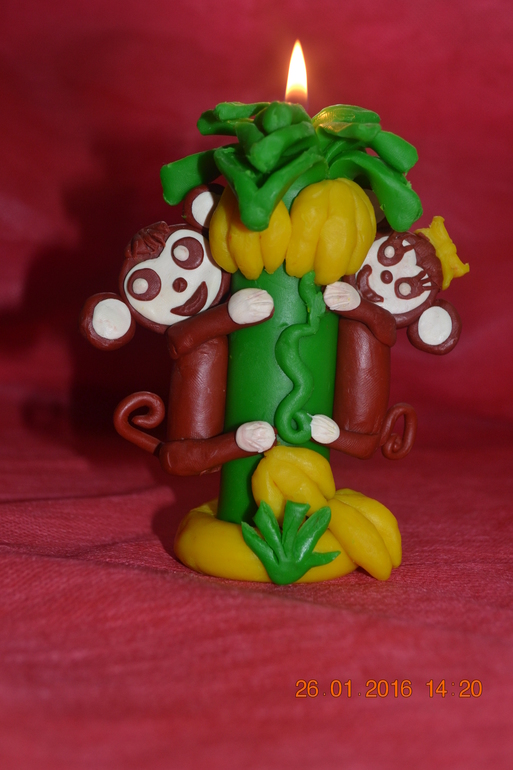 Вот такая свеча с милой парочкой обезьянок у нас получилась ))