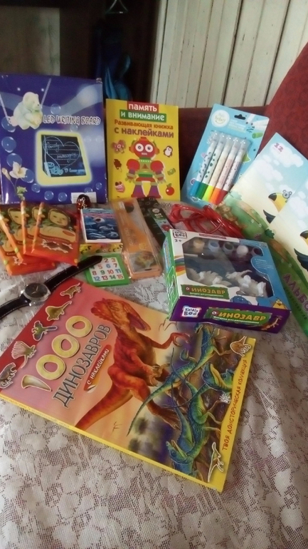 Благодарности и поздравленияЗдравствуйте дорогие девчата! Хочу сказать от всей нашей семьи спасибо , такому чудесному человечку как Мария!!! Скольких она осчастливила и продолжает дарить радость и счастье окружающим !!!!Нам посчастливилось выиграть !!! Были очень этому рады дети , рисовали динозавров ночью , очень старались и не напрасно ))) Спасибо вам огромное Мария !!! За ваши подарки , за выигрыш и одежду и красовки для сына!!! Низкий вам поклон!!! Дай Вам Бог здоровья и счастья !!!! Вы добрая ФЕЯ дарящая такую радость всем!!!! Храни вас и вашу семью Бог!!!