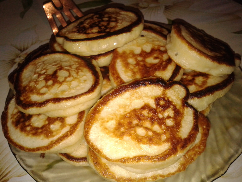 5. Разогреть сковороду, влить раст. масло и сразу начать жарить оладушки с двух сторон.