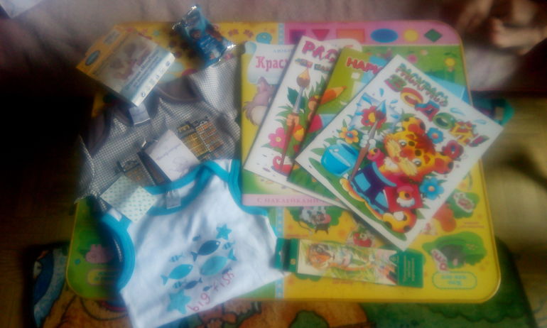 Благодарности и поздравленияВыиграли у Анастасии https://m.babyblog.ru/user/lenta/19051985 подарочки для дочки и сыночка бодики ,хотелось-выразить большую благодарность Анастасии! Расскрасок и старшей досталось дочки! Извиняюсь за качество фоток! ещё раз огромное спасибо!