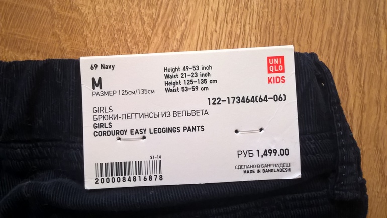 Вот такие новые вельветовые брючки-леггинцы UniQlo. Размер 128-134.