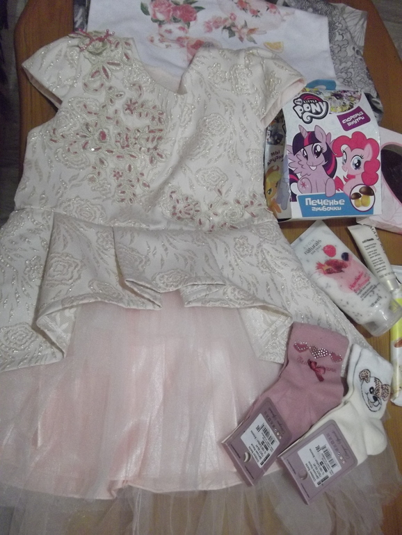Отдельное спасибо за подарочки для меня и сладости для дочерей! Носочки, платье "как у мамы " + футболочка, всё прелестно!