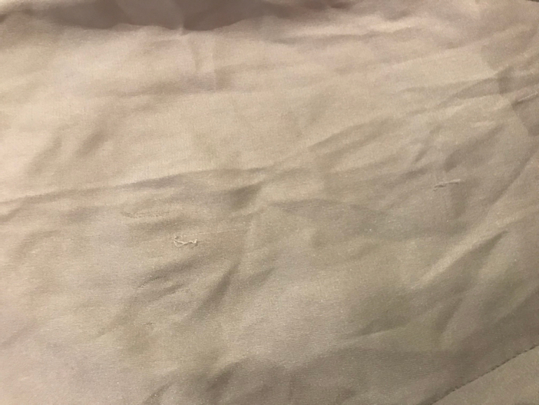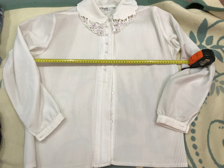 21. Одежда, висевшая в магазине, теперь с разной степенью брака. Блузка, р.L, струящаяся ткань. Затяжки на рукаве