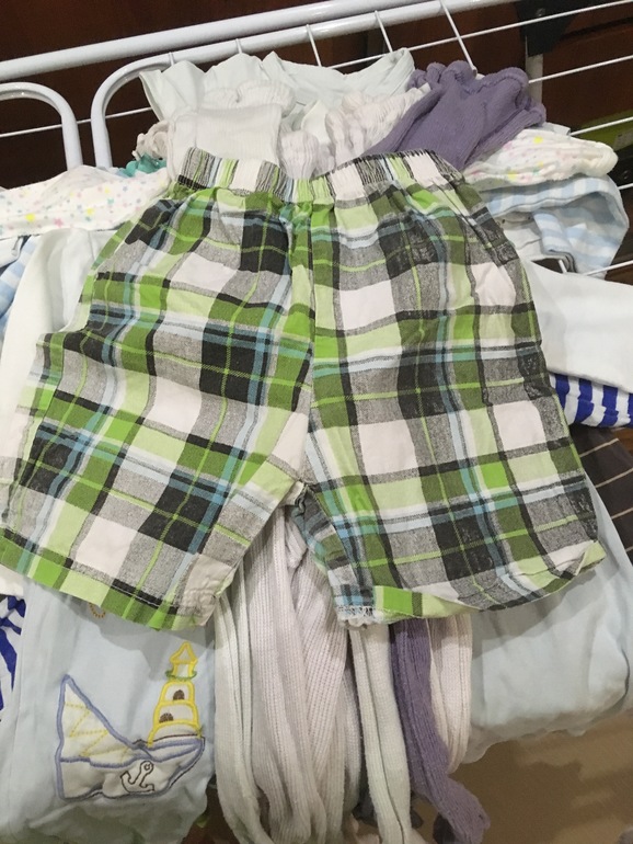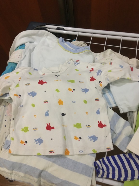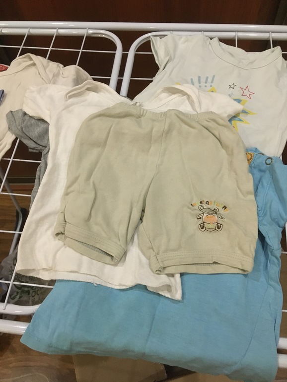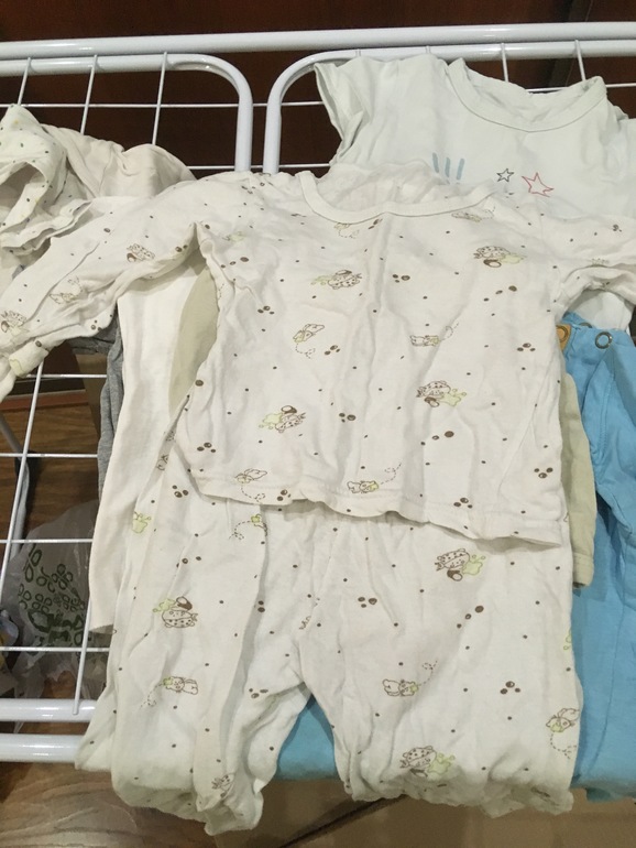 Все вещи б/у. Одежда обычная не фирменная, трикотаж, х/б, на некоторых футболках имеются пятна от фр.пюре, на некоторых колготах (они 100 х/б) есть зашитые дырочки (шов расходился на пальцах на ногах). Так же в пакете шорты, трусики, носки, кофточка с длинным рукавом, пижама, штанишки.