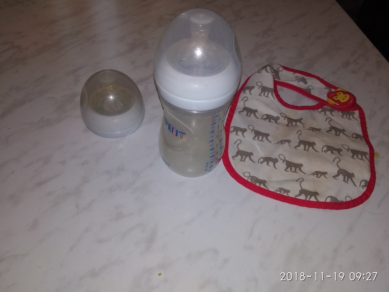 В дар бутоылочка Avent и запасная соска с крышкой к ней + фартучек