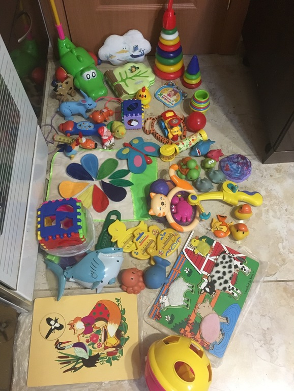 Добрый день. Вот могу предложить игрушки. Если поедете, то найду ещё книжки и лошадку-качалку, которая при нажатии на ухо издаёт звук цоканья копыт, ржанье, двигает хвостом и ртом. Принесу всё к станции МЦК Соколиная гора (восток, между Партизанской и Шоссе Энтузиастов).