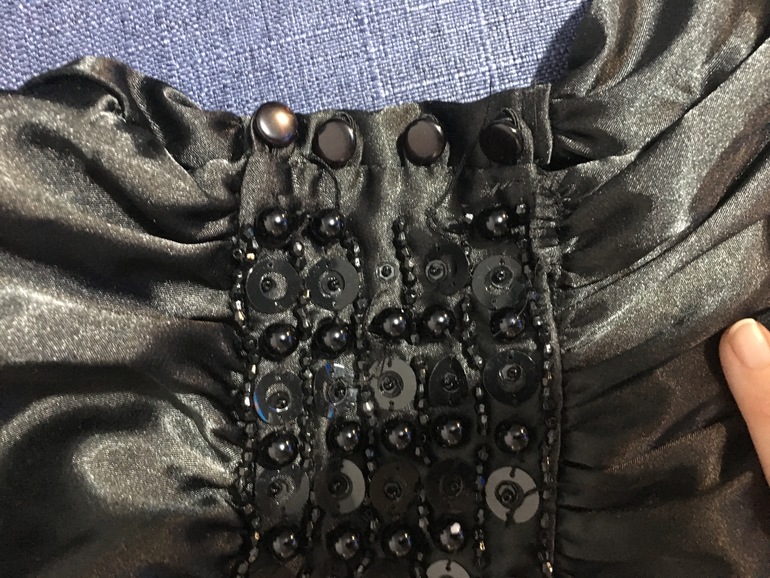 (Пыталась поймать маленькую зацепку на одном из воланов юбки спереди- если б не разглядывала- не заметила б).