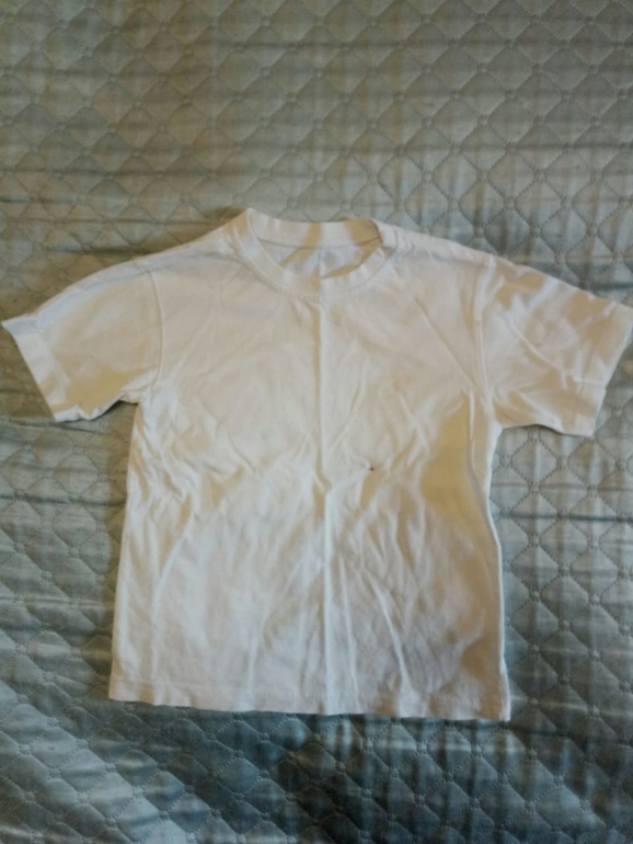 3. Футболка белая, на ребенка 6-8 лет. Маленькое пятнышко спереди.