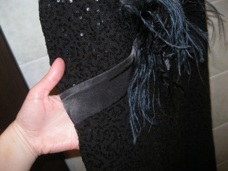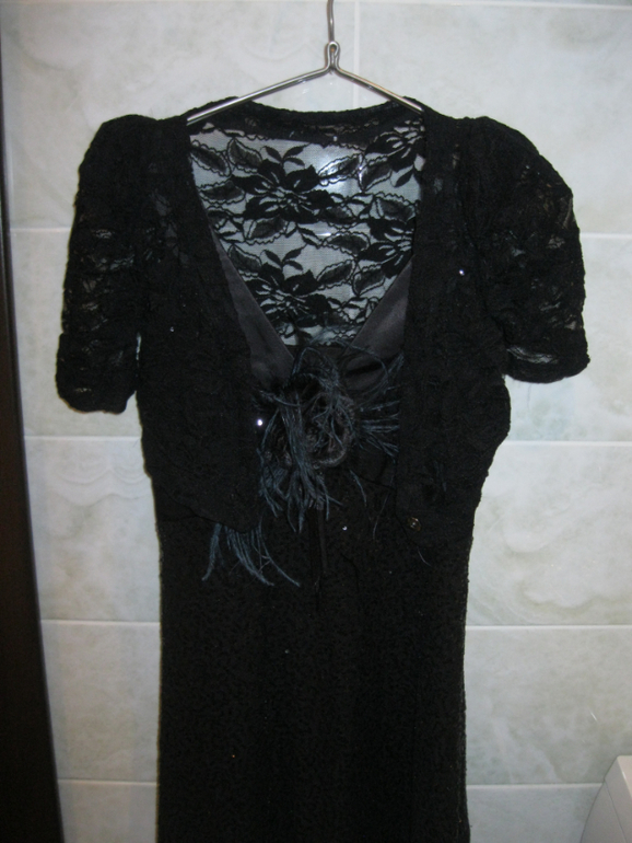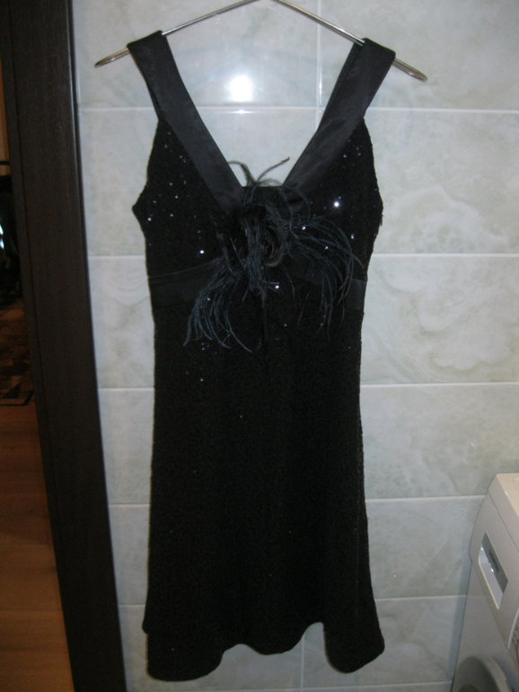 Платье с пайетками (перья на цветке после стирки поменяли цвет), в остальном хорошее состояние, болеро кружевное к нему - торчат ниточки