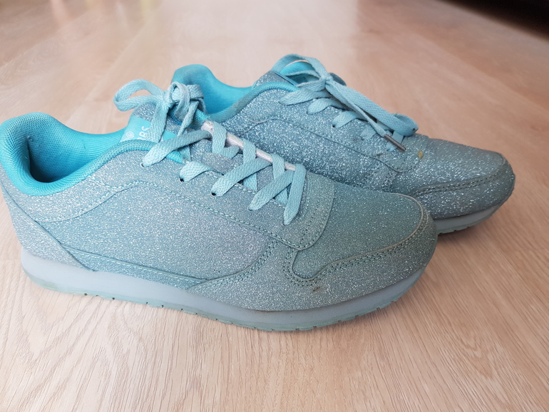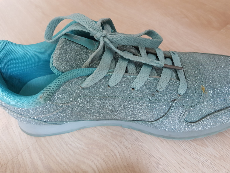 У меня стопа 25,5, мне идеально с комфортным запасом. Минус - протерлась ткань в одном месте и жёлтое пятно краски сверху, на фото все видно. В остальном в идеале, носила мало совсем. Блестят, оооочень удобные)