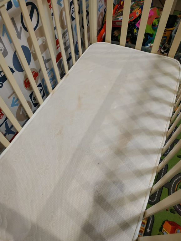 Вместе с кроваткой отдаю матрас для нее (кокосовый с двумя соронами жесткости, но требующий чистки к сожалению), и пододеяльники. если нужны - чехлы на бортики также отдам (сами борты к сож. не сохранились).