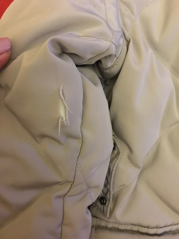 1. Очень качественная куртка на 4 года на прохладную погоду (до +10, думаю). К сожалению, есть нюанс - примерно 1,5 см ровный разрез верхней ткани на рукаве. Уверена, что можно аккуратно и незаметно подшить, но сама не умею.