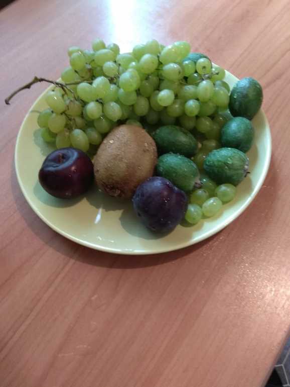 Мы купили наш любимый виноград,белый!Я его так хотела,месяца 2!прям облопатся!))а еще фейхоа!а оказалась вкусная штука!Оксаночка,спасибо тебе за вкусняшки,безмерно тебе благодарны!🎈