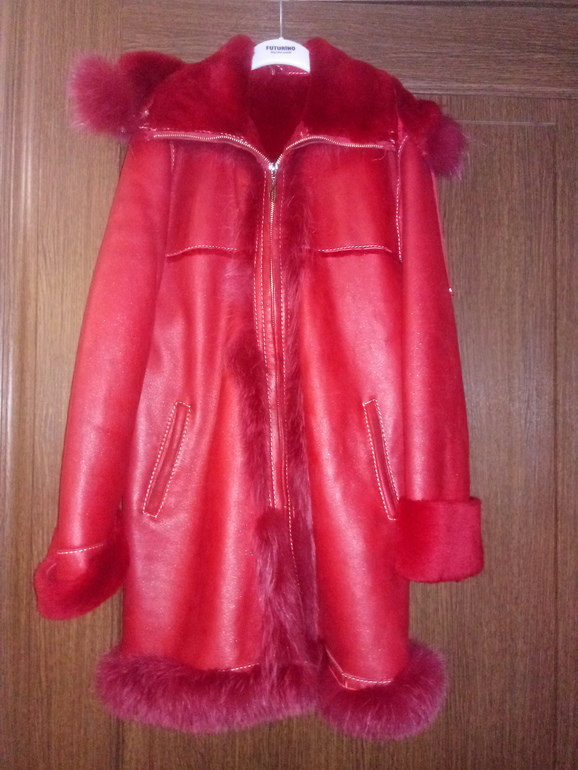 Красная - это дубленка, не могу сказать точно цигейка или искусственный мех, но тепленькая. Т.к. Вы попросили первой, предлагаю Вам забрать дар. В ЛС напишу координаты.