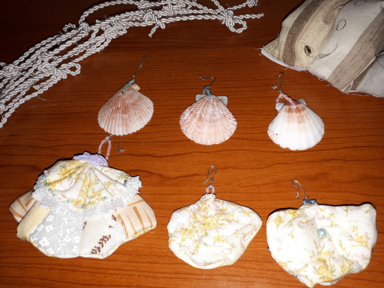 2) Для ХМ: бирюльки для ваших задумок в 1 руки, что не пригодилось мне - подвески из ткани и ракушек, тканевый карман. Все в одном стиле, украшены бисером. Шнуры связаны.