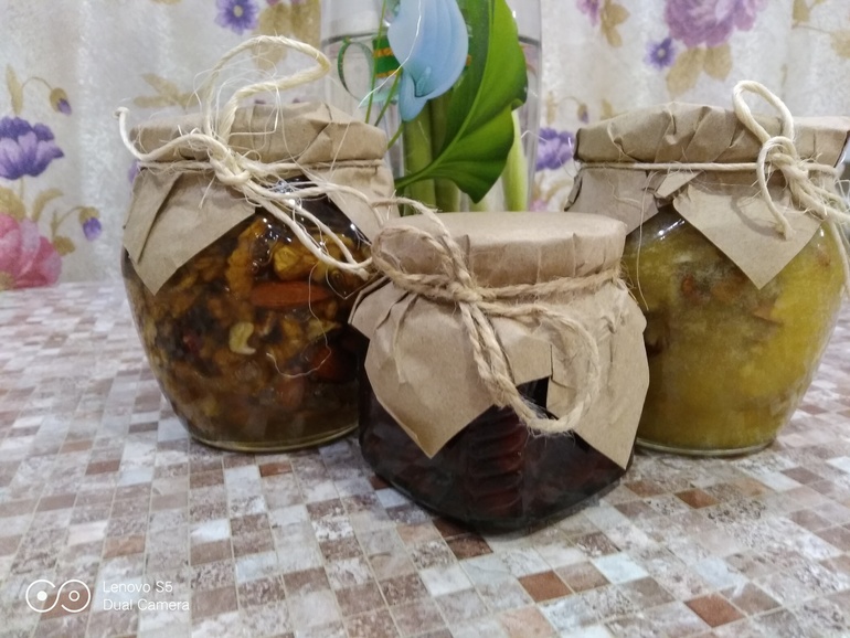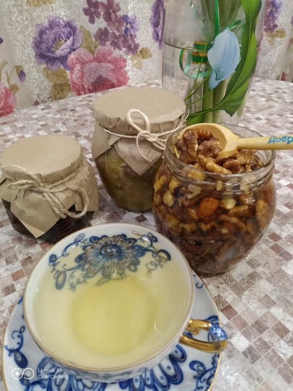 Феечки одарили меня 2 видами меда с орешками и вареньем из айвы с апельсинчиком. Девочки, это просто райское наслаждение!!! Особенно с травяным чайком!))) Я даже затрудняюсь сказать, что мне больше всего понравилось....наверное, ВСЁ!!!))))