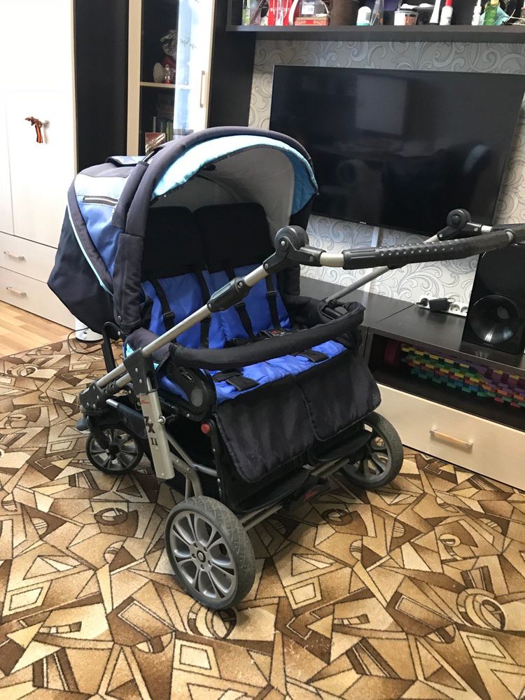 ОТДАМ игрушки, детская мебельОтдам бесплатно коляску для двойни Hartan ZX II. С полным комплектом аксессуаров: две люльки для новорожденных, фирменная сумка, дождевик, накидка от ветра, термо-чехол для бутылочки, чехлы на колеса.