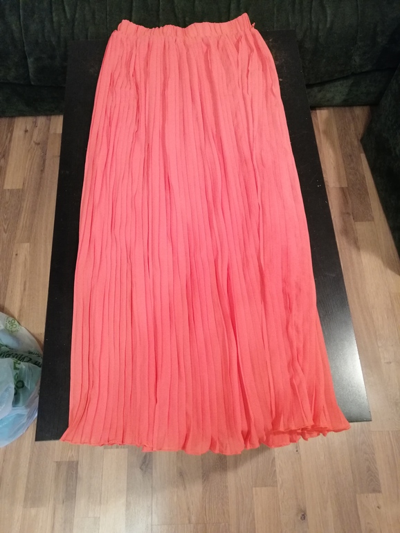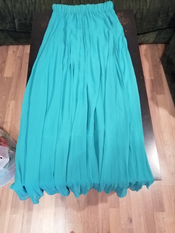 5-6. Персиковая и зелёная юбка плиссе в пол.