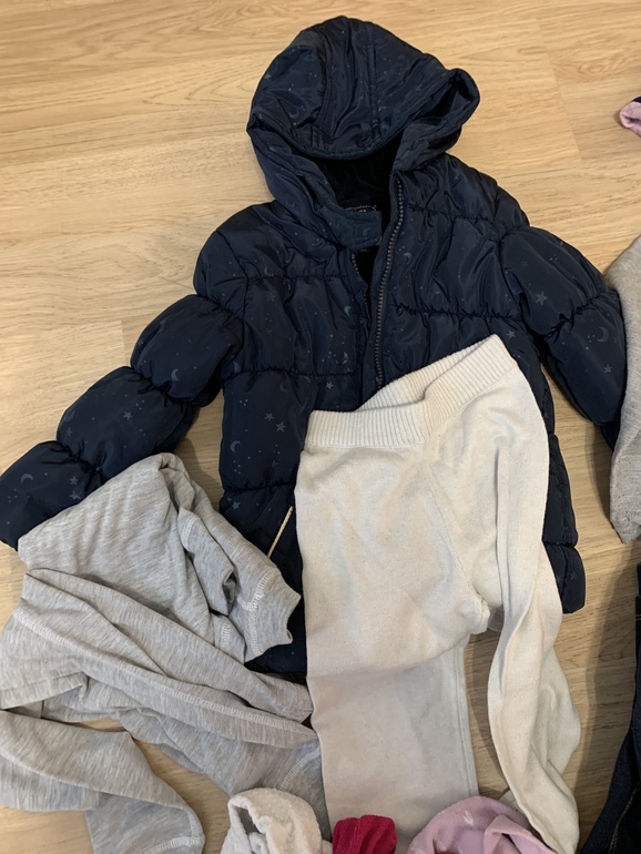 Есть термобелье новое, куртка, много колготок, джинсы. Вещи новые и б/у